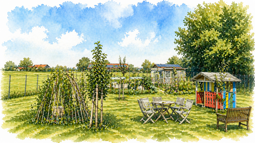 Unsere Gartengemeinschaft ist im Gartenbauverein organisiert, der auch das gemeindliche Grundstück pachtet. Was einst mit acht Familien begann, ist über die Jahre stetig gewachsen: Heute gärtnern hier 15 Familien sowie weitere Einzelpersonen – insgesamt 45 Erwachsene und 23 Kinder.