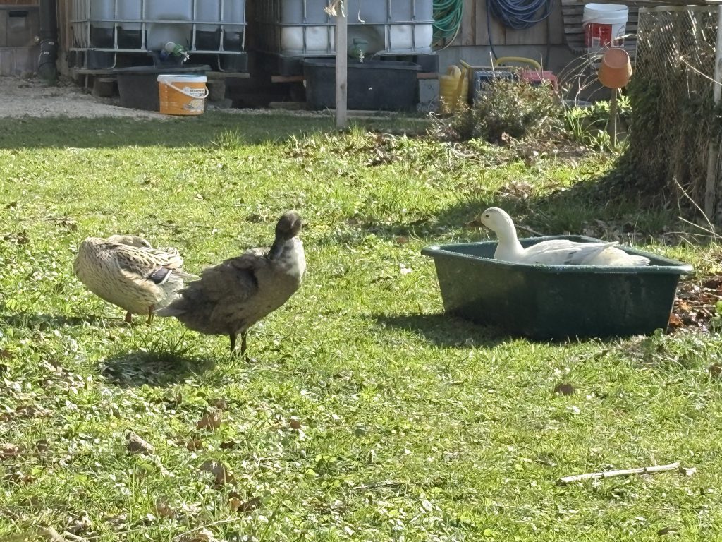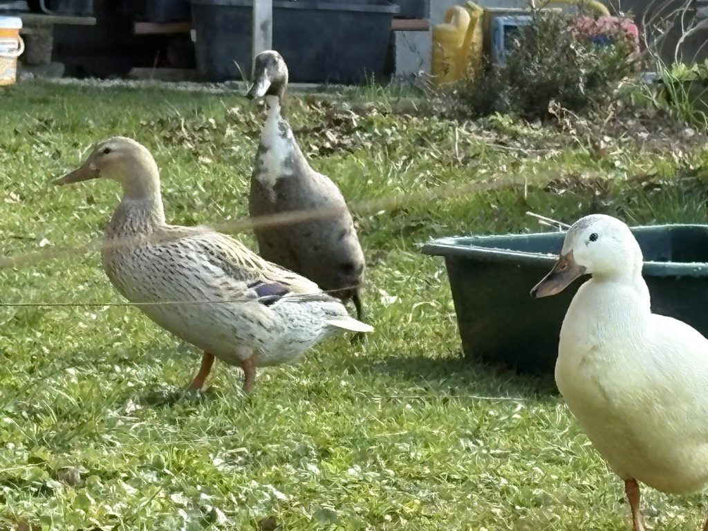 Jetzt haben wir einige gefiederte Mitbewohner bekommen. 3 weiblich Enten, Elvira, Olga und :-). Sie haben ihre neue Behausung bereits angenommen, aber haben ihren eigenen Kopf. Es braucht noch viel Geduld und Einfühlungsvermögen. Aber das wird schon, aber genug der Worte… Bilder sagen mehr aus